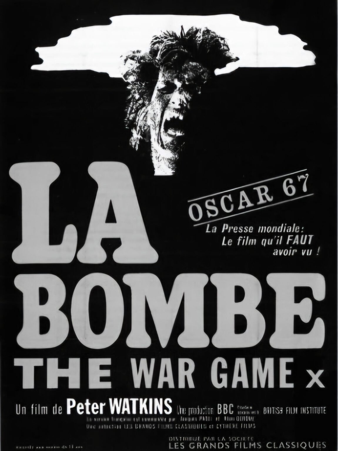 Le titre original, “The war game” (« Le jeu de guerre »), dit bien mieux le fossé abyssal qui se creuse entre l’équilibre de la terreur imposé par la guerre froide et la réalité d’une guerre nucléaire. Peter Watkins reprend les codes du reportage télévisé pour décrire les conséquences à court et moyen terme d’un bombardement atomique du Kent, au sud de l’Angleterre, dans le cadre d’un conflit généralisé. Il se base sur les connaissances accumulées lors des bombardements conventionnels et nucléaires de la Seconde Guerre mondiale et de deux décennies d’essais nucléaires. Commandé par la BBC, le documentaire n'est pas diffusé par la chaîne officiellement pour des raisons de qualité, en réalité sur pression du gouvernement qui le trouve, à raison, extrêmement réaliste et alarmiste. À la suite de cet épisode, Peter Watkins démissionne de la BBC. Le film est primé aux Bafta, à la Mostra de Venise et obtient l’Oscar du meilleur documentaire.rfi, Olivier Favier, 10/11/2025